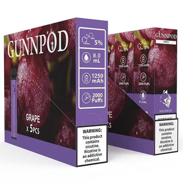 A Gunnpod 2000 Puffs vape shop egy népszerű e-cigaretta, amelyet gyárunk értékesít és gyárt. A minőség 100 százalékosan garantált. A Gunnpod akár 2000 féle friss, 5 százalékos (50 mg) nicsós e-folyadék befogadására képes. A Gunnpod gyönyörű kialakítású, kis méretű és könnyen hordozható. 13 féle gyümölcsszáj közül lehet választani, és mindegyik íz autentikus és egyedi. Ha belekortyol, biztosan szeretni fogod, és megsimogatod.